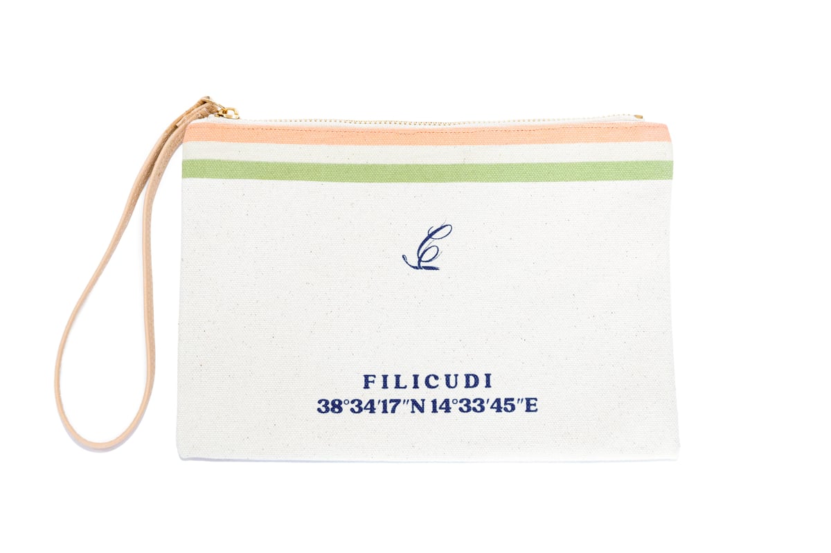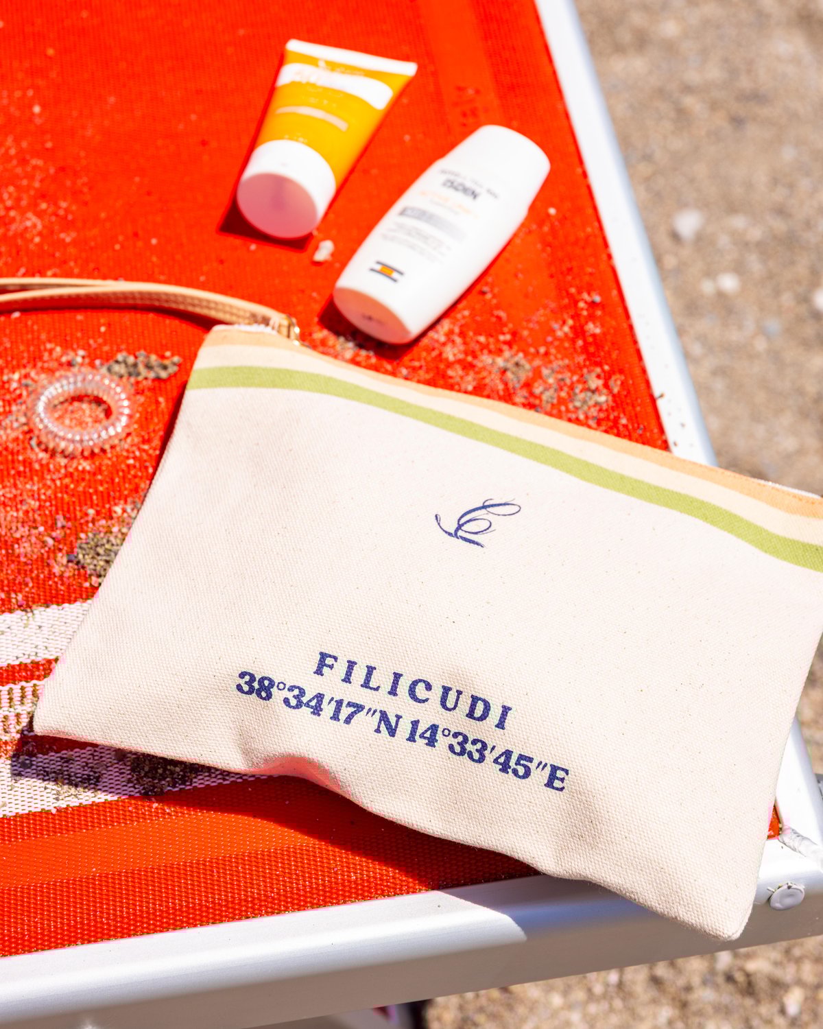 La nostra pouch da mare, della Collezione "Aeolian Essentials", ispirata ai colori dell'isola di Filicudi.