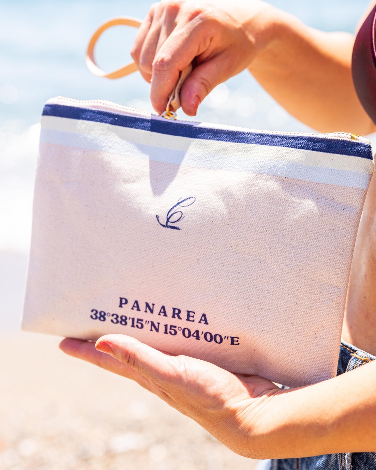 La nostra pouch da mare, della Collezione "Aeolian Essentials", ispirata ai colori dell'isola di Panarea.